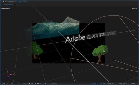 Kada je Adobe uveo 3D u After Effects bili smo oduševljeni. To je bio veliki pomak za nas koji ne radimo u 3D programima. Odjednom smo se razmahnuli sa slojevima koji se sada nalaze u perspektivi kompozicije. Dobili smo trodimenzionalni tekst i njega smo najviše koristili. Kamera nam je pružala pravo 3D iskustvo. Ali vremenom smo postali zahtevni, pa nam je smetalo to što rotacija pogleda (Custom view) nije iz tačke koju bismo mi želeli ili što ne vidimo gde nam je neki objekat, a znamo da smo ga tu postavili.