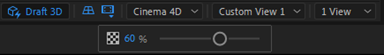 Da bismo aktivirali Extended Viewer mora biti aktiviran Draft 3D, a onda u padajućem meniju na samoj ikoni Extended Viewer-a imamo podešavanje dimovanja prikaza proširenog pogleda na scenu. Manji procenat na slajderu omogućava sagledavanje scene bez okvira slike kompozicije. Praktično ovaj slajder je opacity prostora oko okvira slike kompozicije.