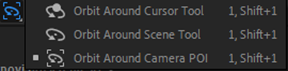 Pored Orbitalnog kretanja oko kamerinog Point of Interest (POI), tačke ka kojoj je kamera usmerena, sada imamo još dva izbora pozicije oko koje možemo da okrećemo kameru. Around Scene je kretanje oko središta scene, odnosno tačke koja se nalazi na koordinatama početne pozicije kompozicije gde su vrednosti X i Y u preseku dijagonala kompozicije, a vrednost pozicije po Z osi je nula. Around Cursor je tačka koju definišemo postavljanjem kursora na željenu poziciju u sceni i onda koristimo Orbital Tool. Tako imamo kretanje kamere oko bilo koje tačke u koordinatnom sistemu scene.