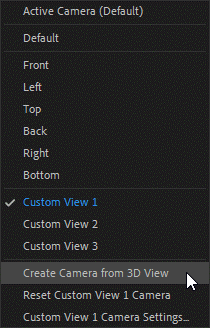 Kada govorimo o 3D kompoziciji neizostavno je da vidimo i alate za pozicioniranje bilo kamere koju koristimo u kompoziciji, bilo Custom View kamere. Kameru retko postavljamo na određenu poziciju, postavljajući numeričke vrednosti parametra position. Kao pravi snimatelji kameru “fizički” pomeramo po prostoru i tražimo najbolju poziciju. U Tool Panel-u imamo na raspolaganju tri alatke koje nam pružaju i više od tradicionalnih pokreta kamerom. Kružno, Pan i Kolica (Dolly) kretanje kamere sada u padajućem meniju ima i izbor mesta oko kog se dešava kretanje.