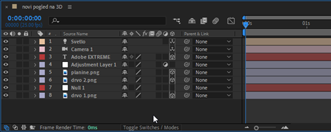 Ako nam 3D objekat nije u okviru slike, videli smo ga kao Draft, kao konture sloja, koji izgleda kao pravougaonik bez sadržaja i može biti bilo koji sloj iz kompozicije. Danas sa novom verzijom imamo konture sloja i izvan okvira kompozicije.