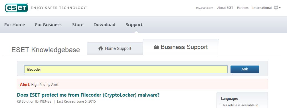 Zbog povećanog broja prijavljenih slučajeva filecodera, jedne od varijanti ransomeware infekcija o kojima smo pisali više puta, u nastavku ćemo navesti zvanične ESET-ove preporuke sa strane “Does ESET protect me from Filecoder (CryptoLocker) malware?”. Podsećanja radi, ransomeware je težak tip infekcije koji nakon infiltracije zaključava sva korisnička dokumenta na računaru bez mogućnosti otključavanja, sem ukoliko se ne plati otkup (ransom).