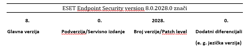 U nastavku se nalazi pojašnjenje prikaza verzije softvera, odnosno koja su značenja brojeva unutar samog naziva verzije.