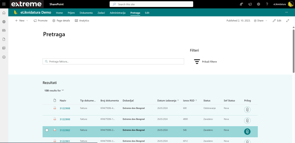 Generalno, sama implementacija, koja uključuje i kraću analizu klijentskih procesa, traje tri radna dana i podrazumeva postavljanje demo, produkcionog okruženja, održavanje korisničke, odnosno obuke administratora rešenja. Za prebacivanje SharePoint site-a koristi se PnP provisioning engine, dok su svi automatski procesi upakovani u Solution koji se prebacuje kako na demo, tako i na produkciono okruženje (Power Apps Environment). Razlog ovakvog pristupa leži u mogućnostima testiranja i primeni novina koje nam SEF donosi. A verujte, još kako donosi!