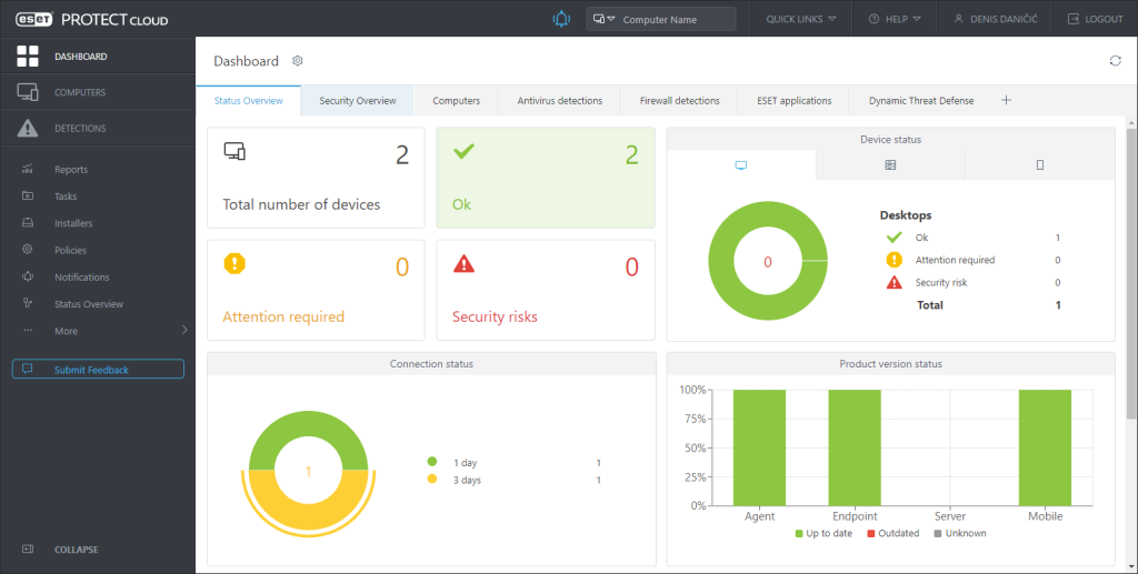 Do kakvog rešenja je ESET došao? Ukratko, kroz ESET Protect Cloud licencu, ESET nudi svoje resurse za postavku vašeg servera. Nakon kupovine odgovarajuće licence dovoljno je da pristupite svom EBA (ESET Business Account) nalogu i aktivirate vaš ESET Protect Cloud server. Proces kreiranja servera traje nekoliko minuta nakon čega je u potpunosti spreman za rad. Već nakon prvog logovanja, server će ponuditi proceduru za kreiranje instalacionih paketa za endpoint stanice i servere u vašoj mreži. Odaberite odgovarajući proizvod, priključite neku od unapred definisanih polisa, preuzmite paket i započnite instalaciju zaštite na vašim uređajima. Nakon instalacije, proizvodi će nastaviti da se prijavljuju ESET Protect Cloud serveru. Za celu postavku servera i kreiranje instalacionih paketa potrebno je ne više od dvadesetak minuta. Pripremljene pakete možete instalirati daljinski sa ESET Remote Deployment ili PsExec alatom, kroz grupne polise ili ručno, zavisno od broja računara i topografije vaše mreže.