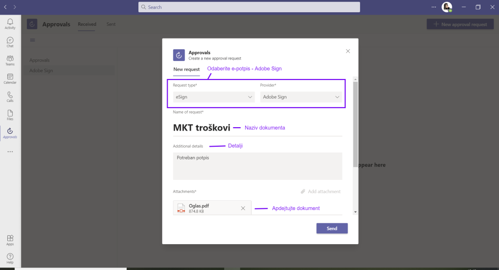 Kreiranje zahteva za odobrenje sa Adobe Sign-om