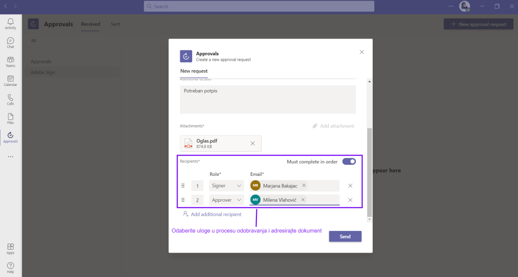 Kako da se koristite Microsoft Teams procesom odobravanja uz e-potpis: Adobe Sign