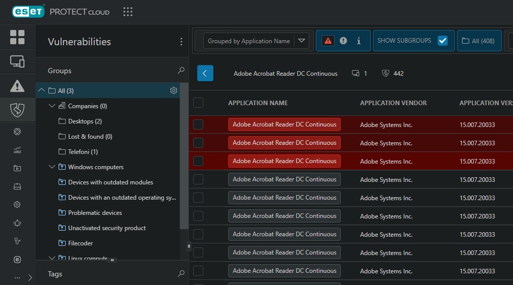 ESET Vulnerability and Patch Management detektuje ranjivosti, omogućava prioritizaciju, pruža korisne informacije o ranjivostima i omogućava automatizaciju instalacije zakrpa. Kao integralni deo ESET Protect servera, novi modul koristi napredne funkcionalnosti dinamičkih grupa, polisa i zadataka sa kojima možete konfigurisati tačnu postavku – šta se krpi, šta preskače, u kom segmentu mreže, na kojim računarima i kada.